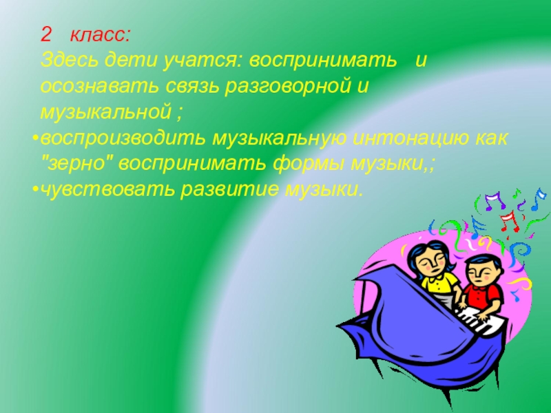 воспроизводить музыкальную интонацию как "зерно" воспринимать формы музыки,;