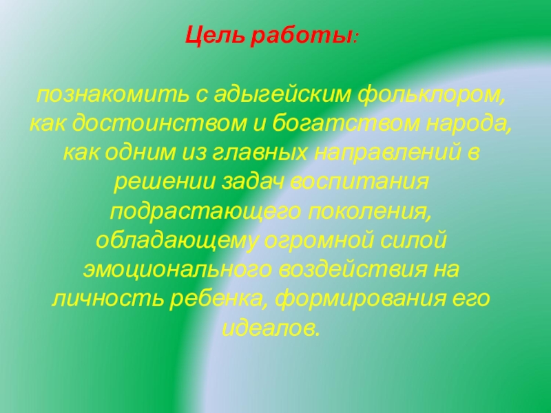 познакомить с адыгейским фольклором, как достоинством и богатством народа,