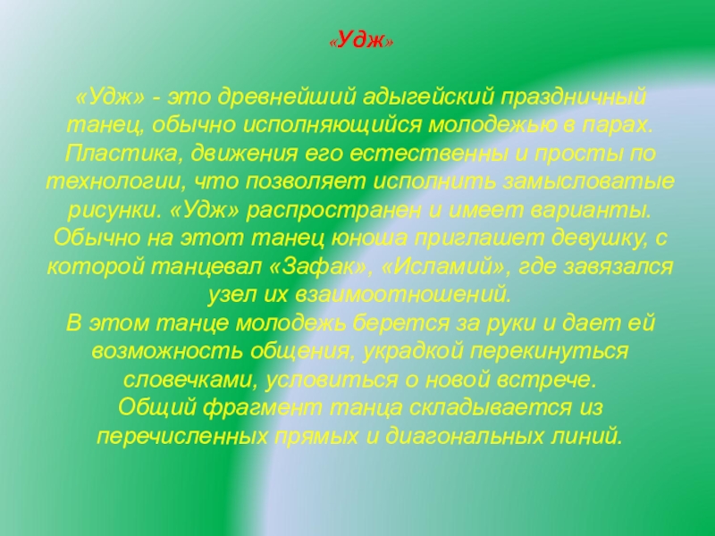«Удж» - это древнейший адыгейский праздничный танец, обычно исполняющийся молодежью в
