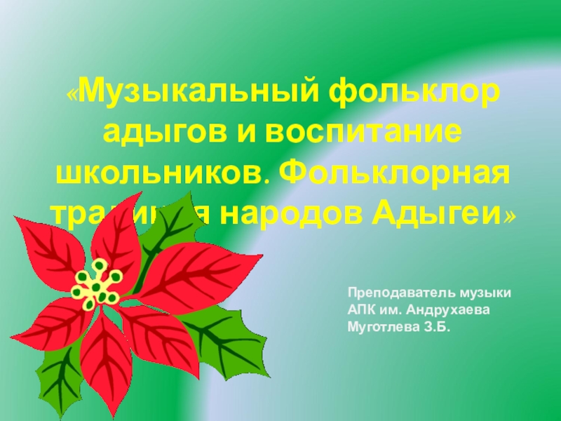 Слайд 1«Музыкальный фольклор адыгов и воспитание школьников. Фольклорная традиция народов Адыгеи»