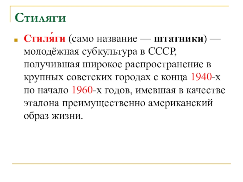 Стиля́ги (само название — штатники) — молодёжная субкультура в СССР, получившая широкое