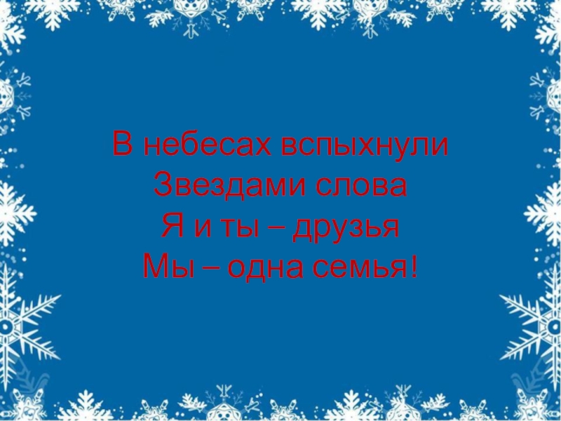 В небесах вспыхнули Звездами слова Я и ты – друзья Мы – одна семья!