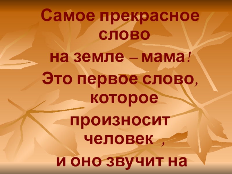 Самое прекрасное слово на земле – мама!Это первое слово, которое произносит человек , и оно звучит на