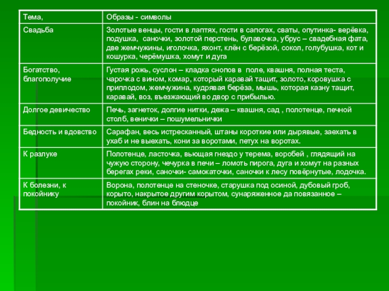 3. чаще всего в образах-символах отражается предметный мир, окружавший крестьянина в быту, занятия, ритуалы.