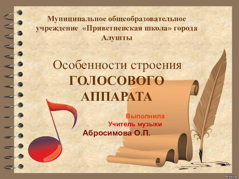 Муниципальное общеобразовательное учреждение «Приветненская школа» города Алушты    Особенности строения  ГОЛОСОВОГО АППАРАТА
