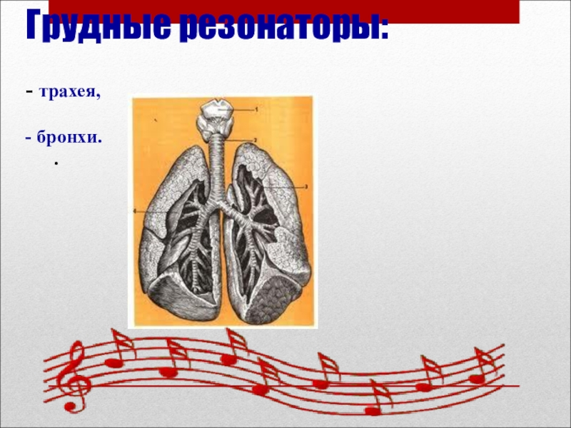 Слайд 8 Грудные резонаторы: - трахея, - бронхи. .