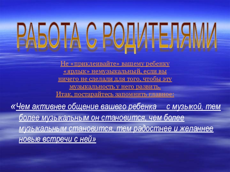 Не «приклеивайте» вашему ребенку «ярлык» немузыкальный, если вы ничего не сделали для того, чтобы эту музыкальность у него развить.