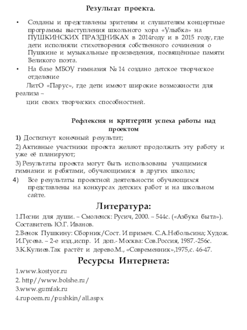5.Оповестить всех участников выступления и их родителей о предстоящем концерте, чтобы приобщить их к творчеству Великого Поэта.