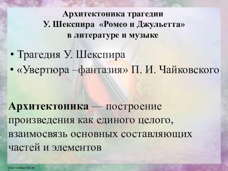 Архитектоника — построение произведения как единого целого, взаимосвязь основных составляющих частей и элементов