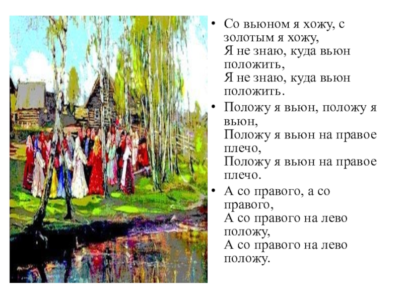 Слайд 16Со вьюном я хожу, с золотым я хожу, Я не знаю, куда