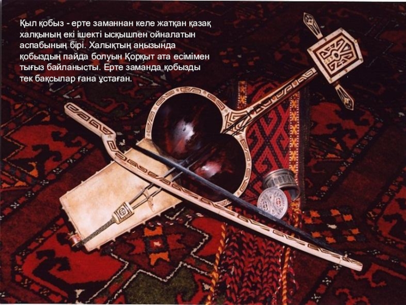 Слайд 12Қыл қобыз - ерте заманнан келе жатқан қазақ халқының екі ішекті
