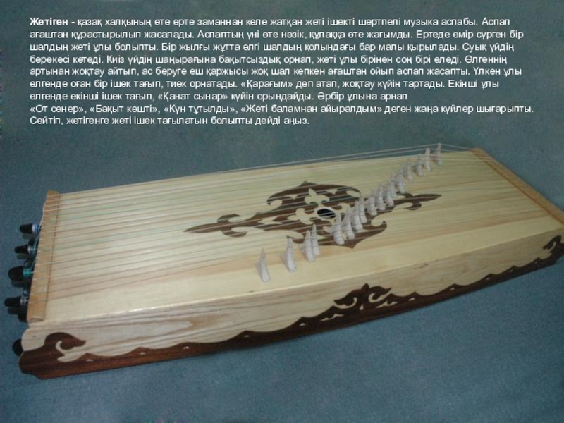 Слайд 17Жетіген - қазақ халқының өте ерте заманнан келе жатқан жеті ішекті