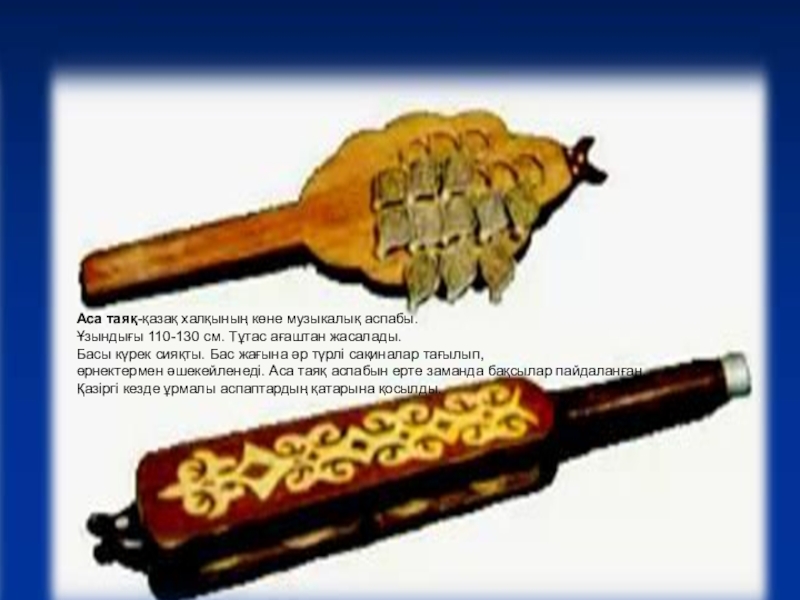 Слайд 14Аса таяқ-қазақ халқының көне музыкалық аспабы.