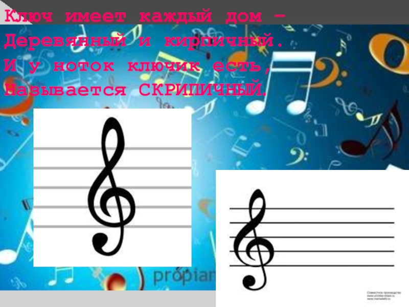 Ключ имеет каждый дом –Деревянный и кирпичный.И у ноток ключик есть,Называется СКРИПИЧНЫЙ.