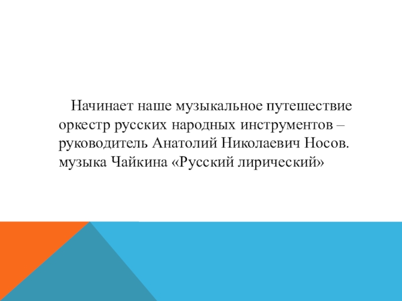 Слайд 6 Начинает наше музыкальное путешествие оркестр русских народных