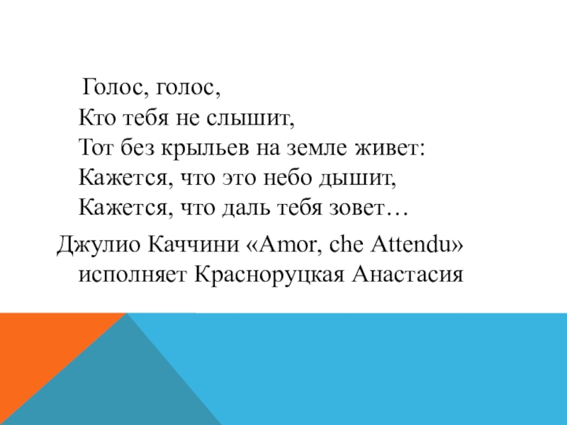 Джулио Каччини «Аmor, che Аttendu» исполняет Красноруцкая Анастасия