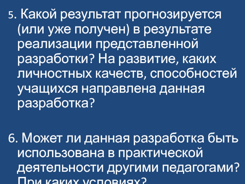 5. Какой результат прогнозируется (или уже получен) в результате реализации представленной разработки? На развитие, каких личностных качеств,