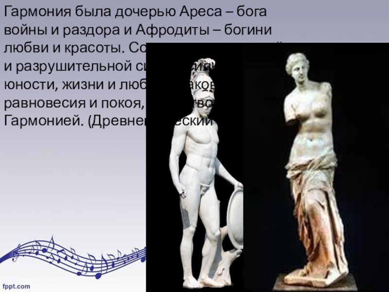 Слайд 4Гармония была дочерью Ареса – бога войны и раздора и Афродиты