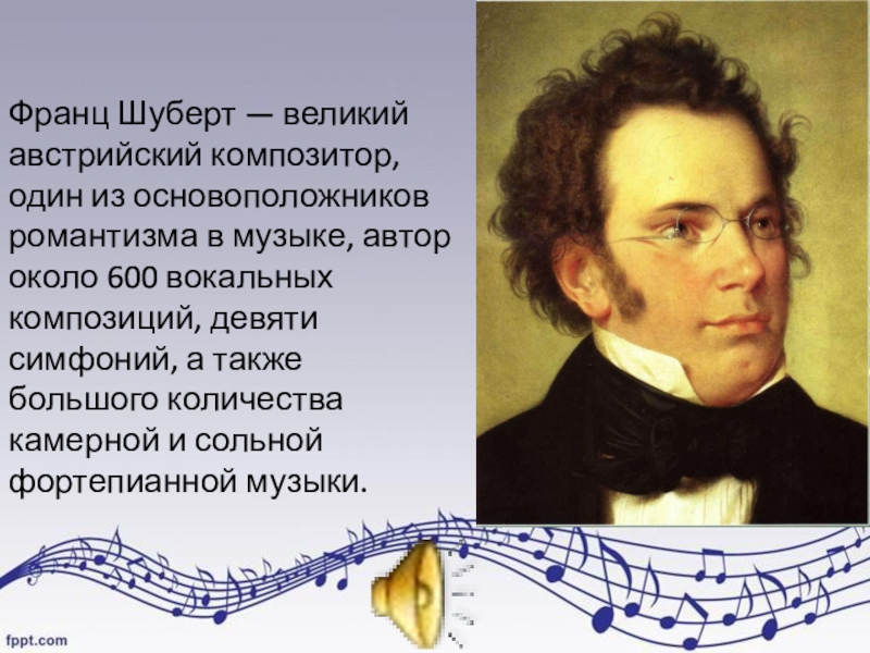 Слайд 5Франц Шуберт — великий австрийский композитор, один из основоположников романтизма в