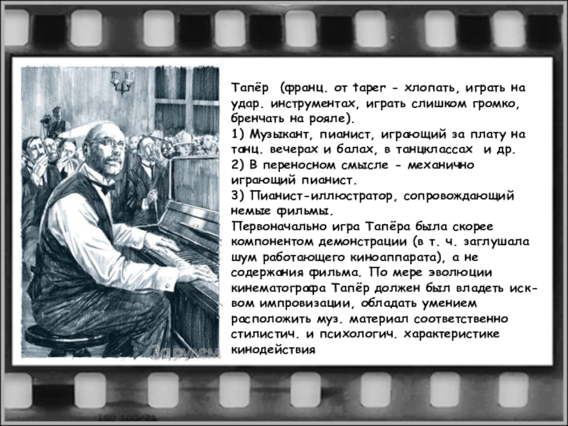 Слайд 7Тапёр (франц. от taper - хлопать, играть на удар. инструментах, играть