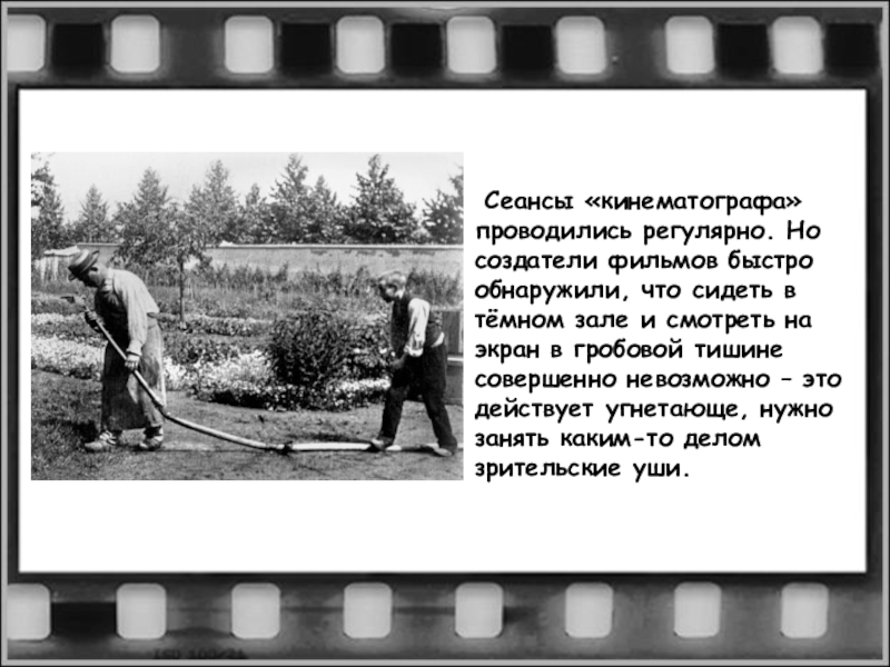 Слайд 6 Сеансы «кинематографа» проводились регулярно. Но создатели фильмов быстро обнаружили, что