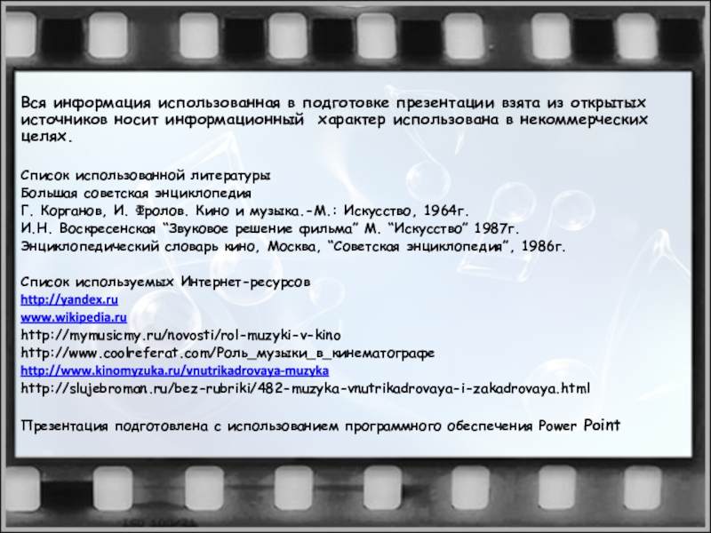 Вся информация использованная в подготовке презентации взята из открытых источников носит