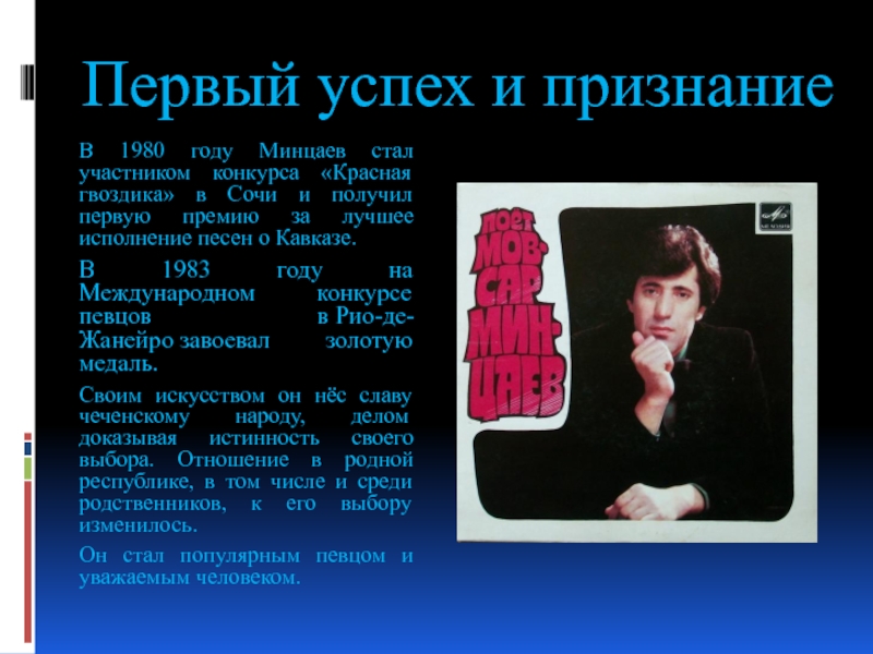 гвоздика» в Сочи и получил первую премию за лучшее исполнение песен о Кавказе.