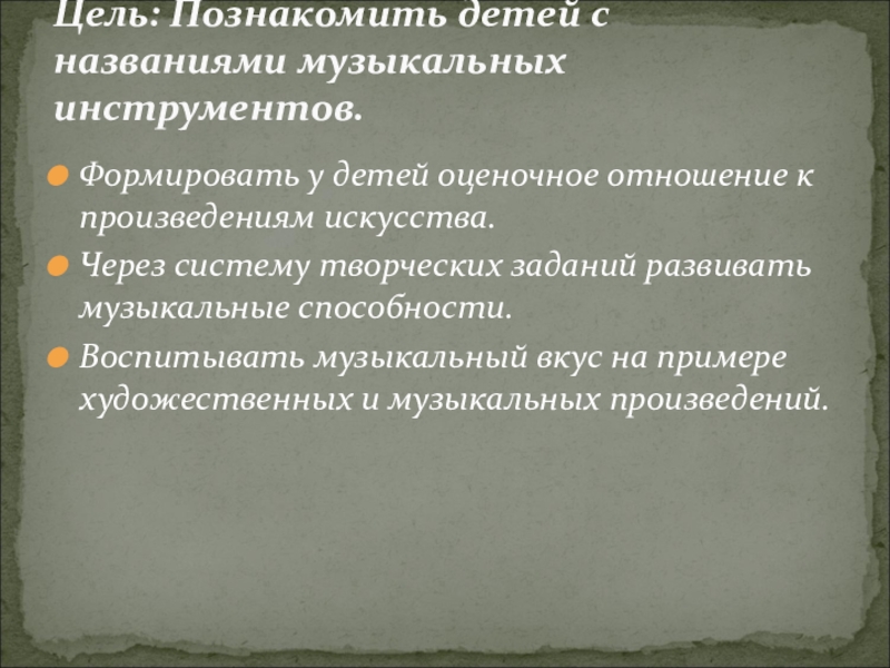 Цель: Познакомить детей с названиями музыкальных инструментов.