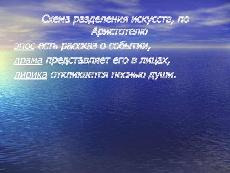 Схема разделения искусств, по Аристотелюэпос есть рассказ о событии, драма представляет его в лицах,лирика откликается песнью души.