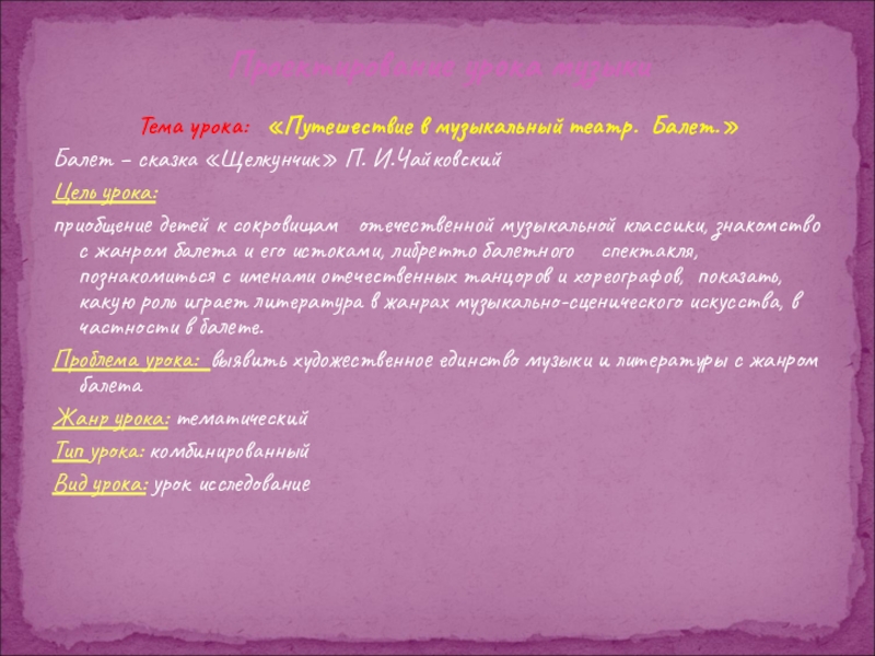 Проектирование урока музыки