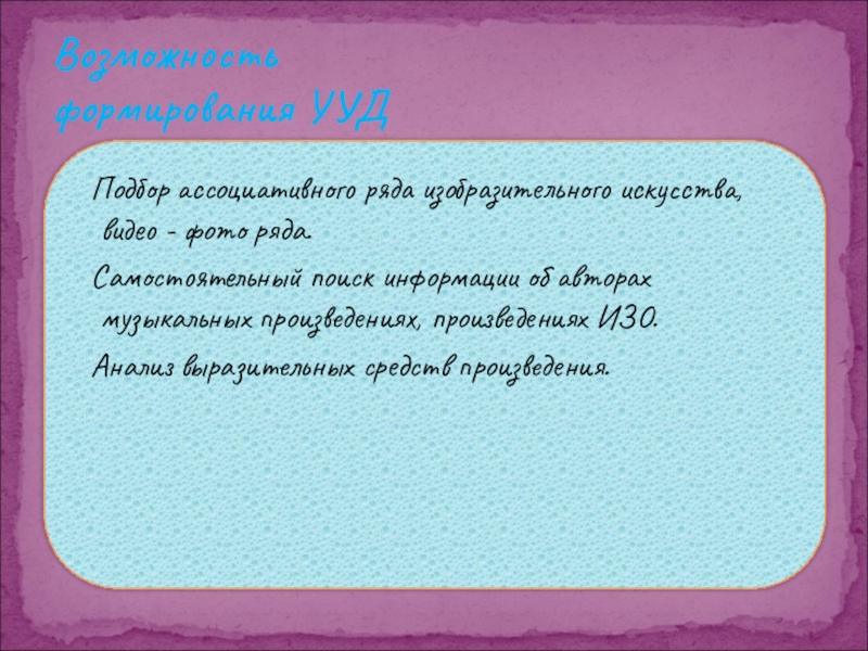 Метод - рассказ учителя с использованием средств визуальной и слуховой наглядности (рассматривание слайдов, слушание музыки).