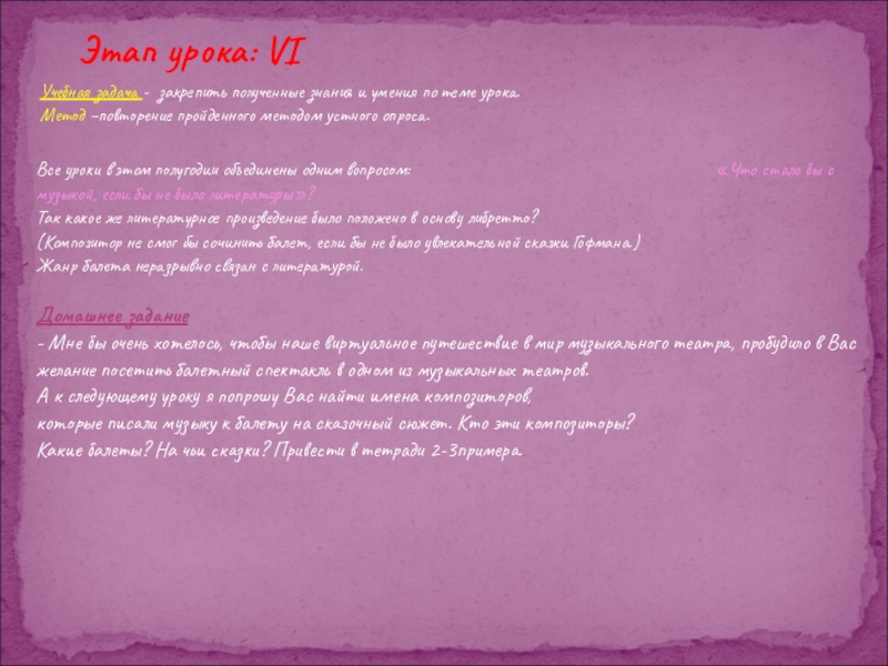 Этап урока: VI
