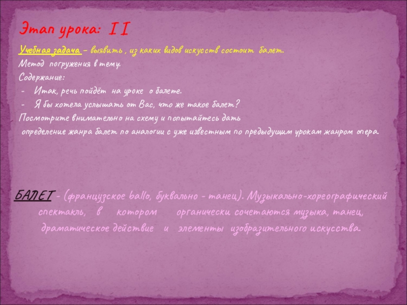 БАЛЕТ - (французское ballo, буквально - танец). Музыкально-хореографический спектакль, в котором органически сочетаются музыка, танец, драматическое действие и элементы изобразительного искусства.