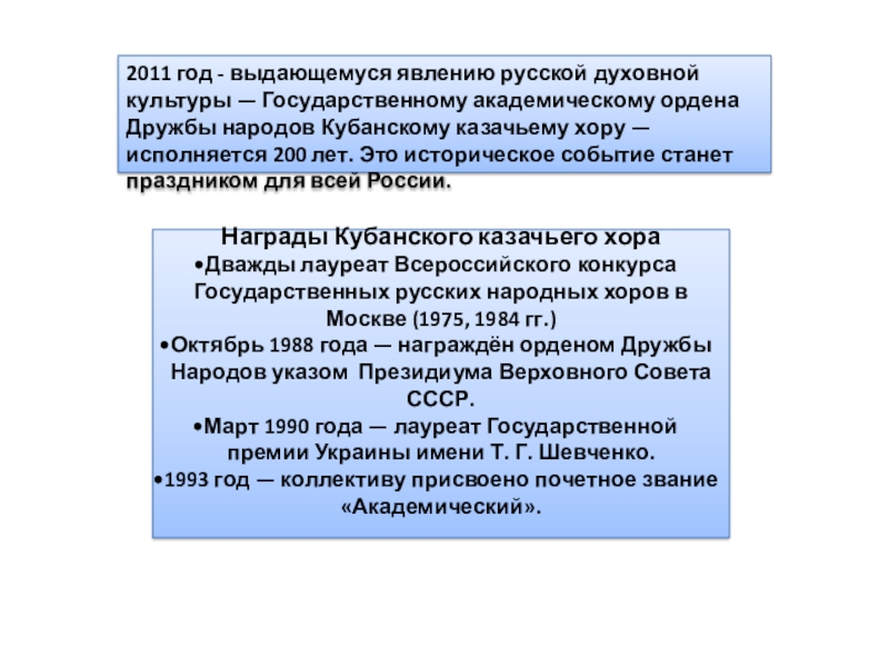 Дважды лауреат Всероссийского конкурса Государственных русских народных хоров в Москве (1975, 1984 гг.)