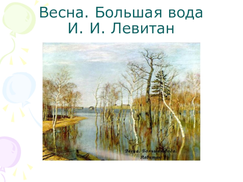 Слайд 11Весна. Большая вода И. И. Левитан