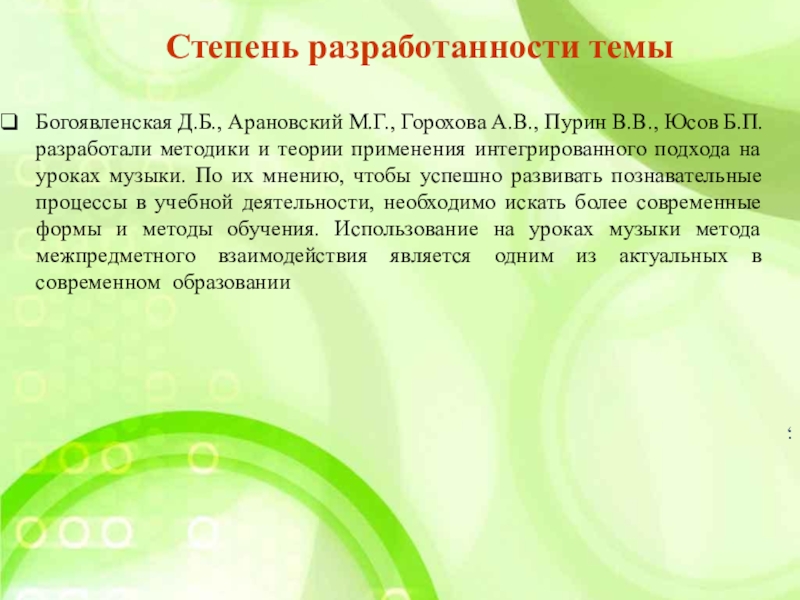 методов, приёмов, технологий, направленных на применение межпредметного взаимодействия на уроках музыки в работах таких авторов, как: Пурин В.Д., Савенкова Л.Г., Максимова В.Н.;