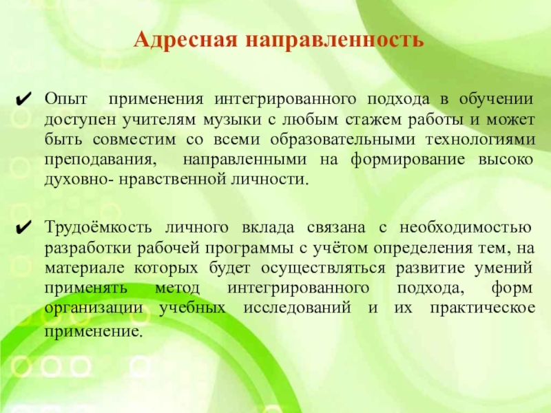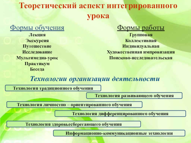 При организации интегрированного обучения появляется возможность показать мир во всем его многообразии с привлечением разных знаний: литературы, музыки, живописи, что способствует эмоциональному развитию личности ребенка и формированию его творческого мышления.