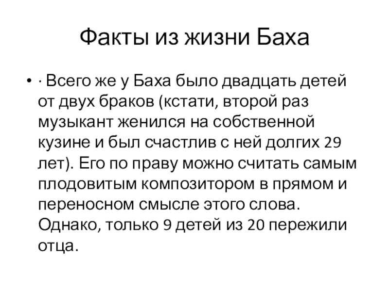 от двух браков (кстати, второй раз музыкант женился на собственной кузине и был счастлив с ней долгих 29 лет). Его по праву можно считать самым плодовитым композитором в прямом и переносном смысле этого слова. Однако, только 9 детей из 20 пережили отца.