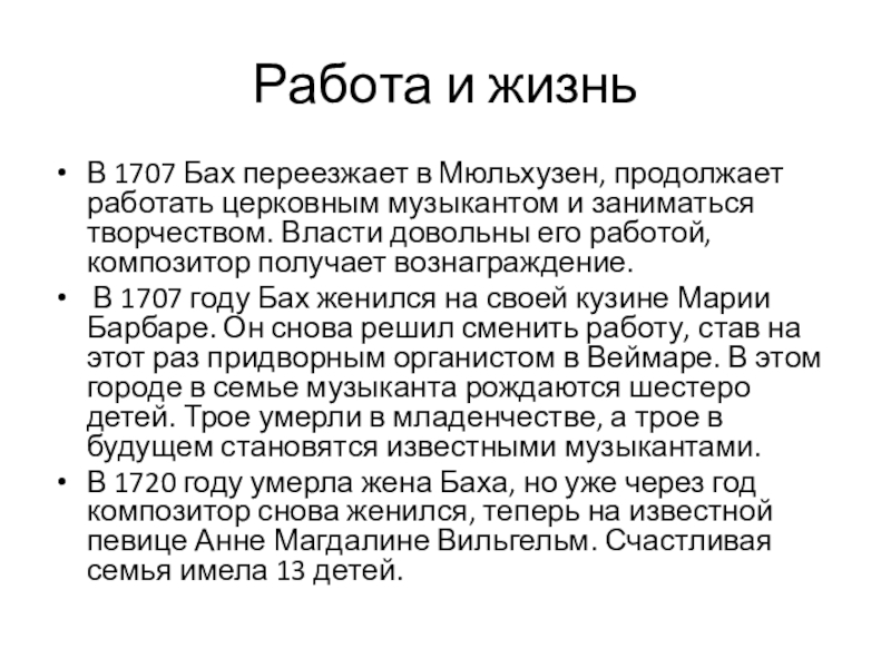 В 1707 Бах переезжает в Мюльхузен, продолжает работать
