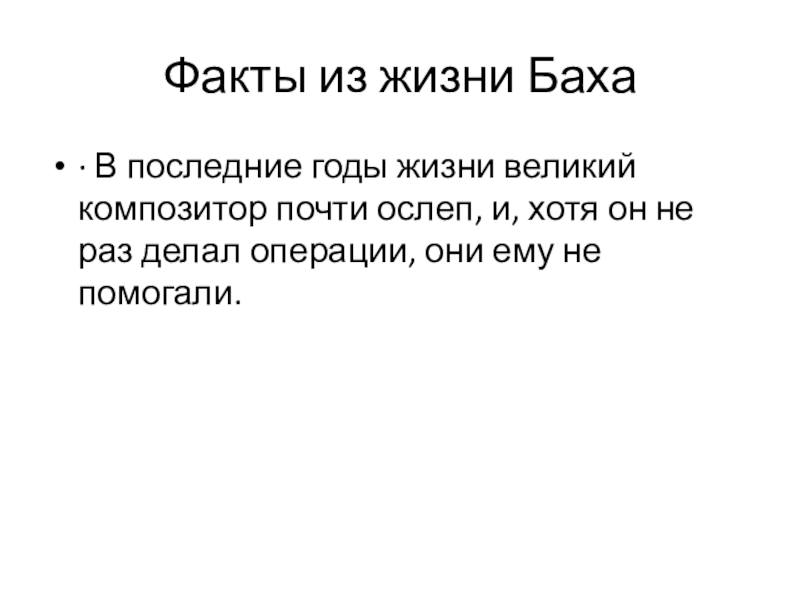· Бах обладал уникальным слухом. Он мог исполнить один раз услышанное произведение без единой ошибки.