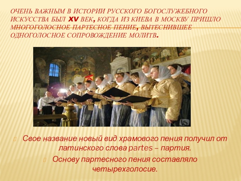 Свое название новый вид храмового пения получил от латинского слова partes – партия.