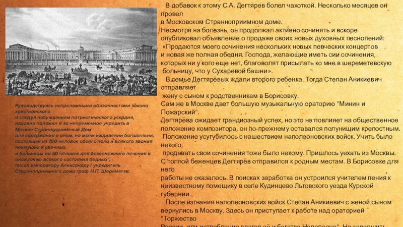 писал императору Александру I учредитель Странноприимного дома граф Н.П. Шереметев.