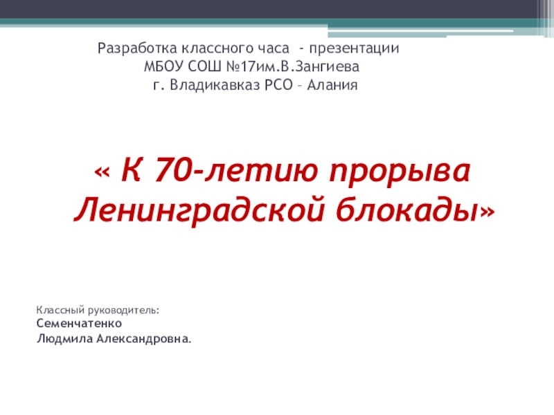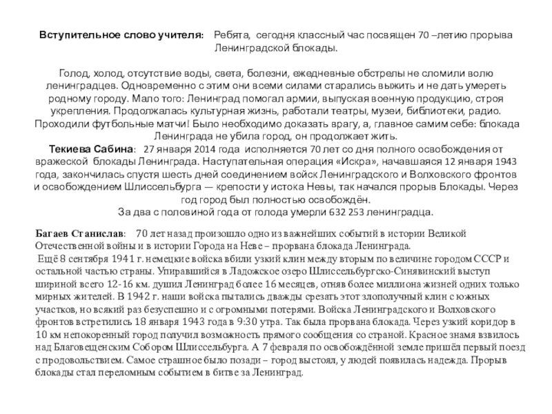 Багаев Станислав: 70 лет назад произошло одно из важнейших событий в истории Великой Отечественной войны и в истории Города на Неве – прорвана блокада Ленинграда.