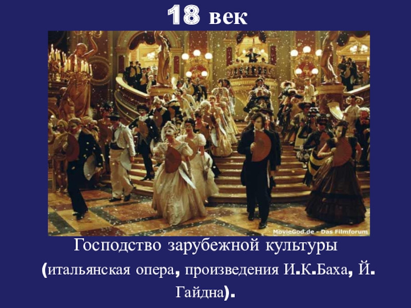 Господство зарубежной культуры (итальянская опера, произведения И.К.Баха, Й.Гайдна). 18 век