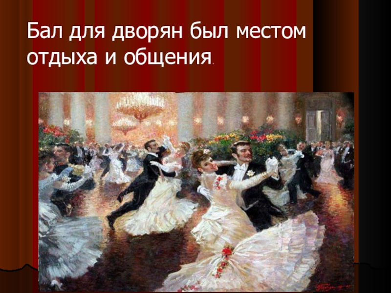 Слайд 6Бал для дворян был местом отдыха и общения.