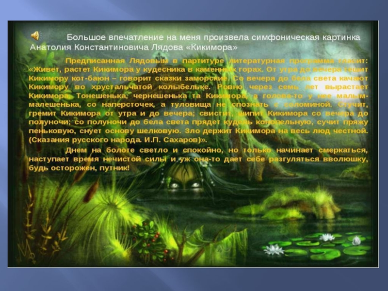Анатолий Константинович  Лядов 1855 – 1914г. Композитор-сказочник симфонических миниатюр (небольших пьес), фантастических музыкальных картинок.