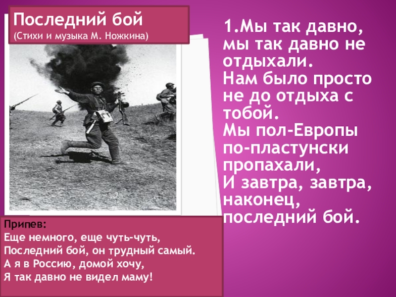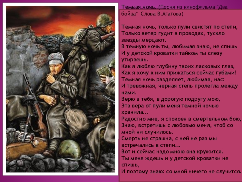 Как я хочу к ним прижаться сейчас Темная ночь. (Песня из кинофильма "Два бойца" Слова В.Агатова)