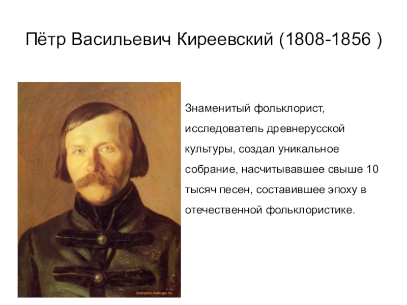 Слайд 5Пётр Васильевич Киреевский (1808-1856 )