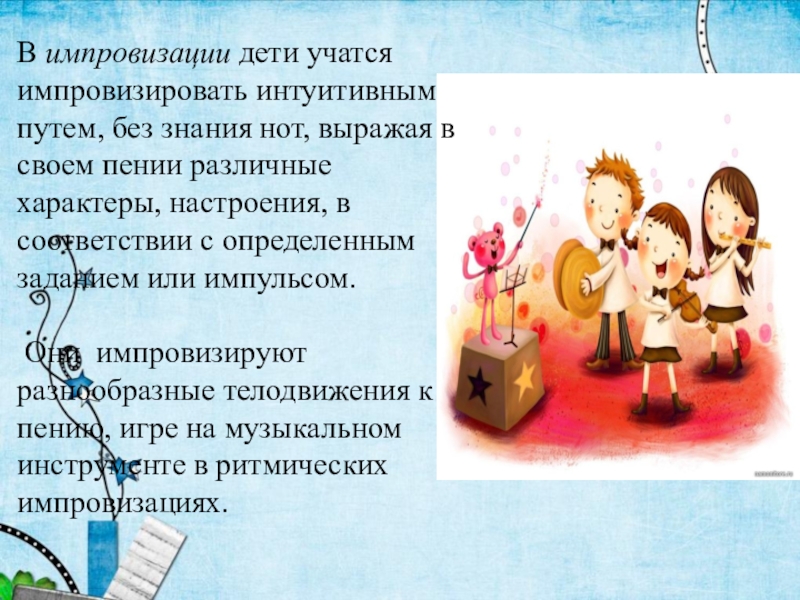 Слайд 14В импровизации дети учатся импровизировать интуитивным путем, без знания нот, выражая
