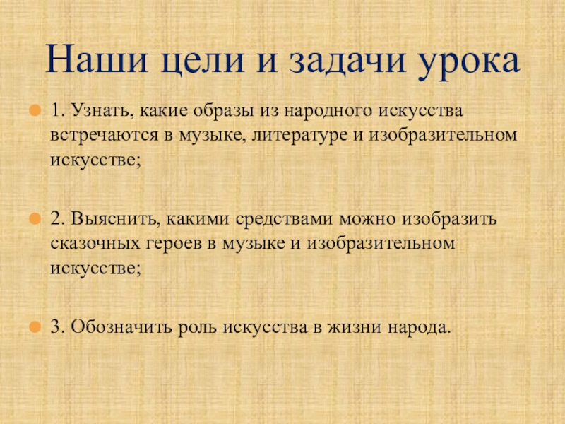 Наши цели и задачи урока
